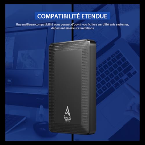 Aiolo - 1T Ultra Slim Portable External Hard Drive HDD-USB 3.0 for PC, Mac & More