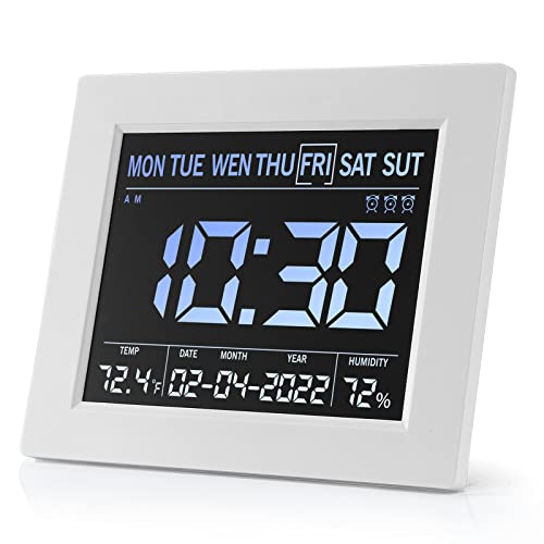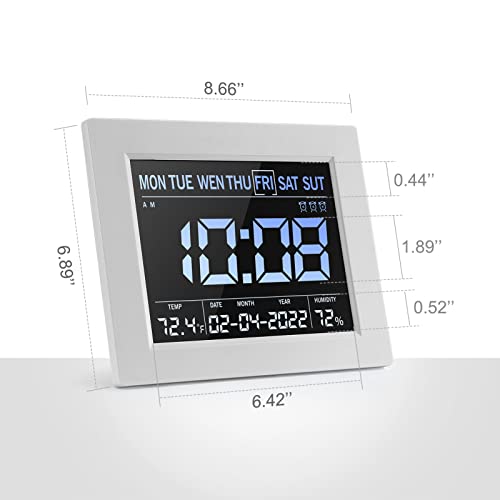Aiuca - Upgraded 8" HD Digital Calendar Alarm Clock with Temperature & Humidity Display
