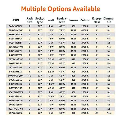Amazon Basics - LED E27 Edison Screw Bulb, 7W, Warm White, Non Dimmable, Pack of 2