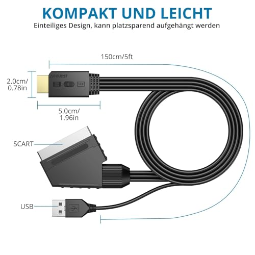 Autoutlet - 150 cm Scart to HDMI Converter, 1080P, Supports 16:9/4:3, PAL/NTSC