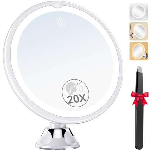 Auxmir - 20X Magnifying Lighted Vanity Mirror with Suction Cup & Tweezers