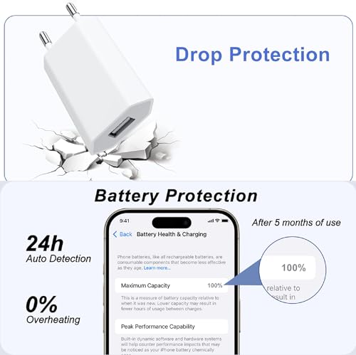 Bihpjd - 2-Pack Fast USB Charger Universal Plug Adapter, 5W 5V 1A, Travel Compatible with iPhone, Samsung, Huawei, and More - White