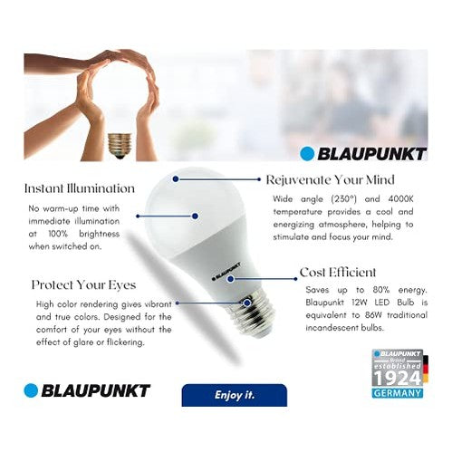 Blaupunkt - Classic A60 LED Bulb, E27 Base, 12W, 4000K Natural White, 1260 Lumen