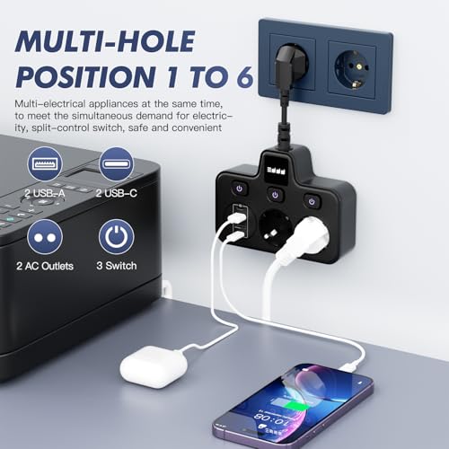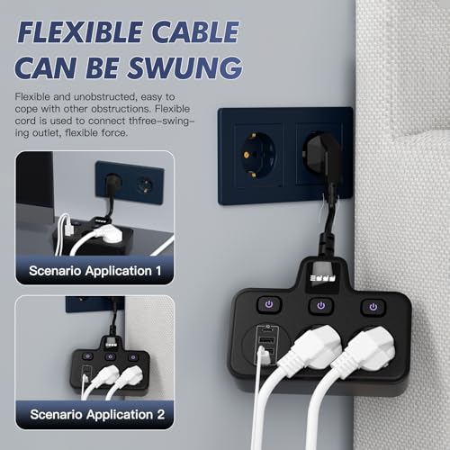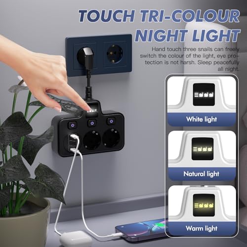 Bochlion - Power Strip with USB, 2 Outlets, Independent Switches & Night Light