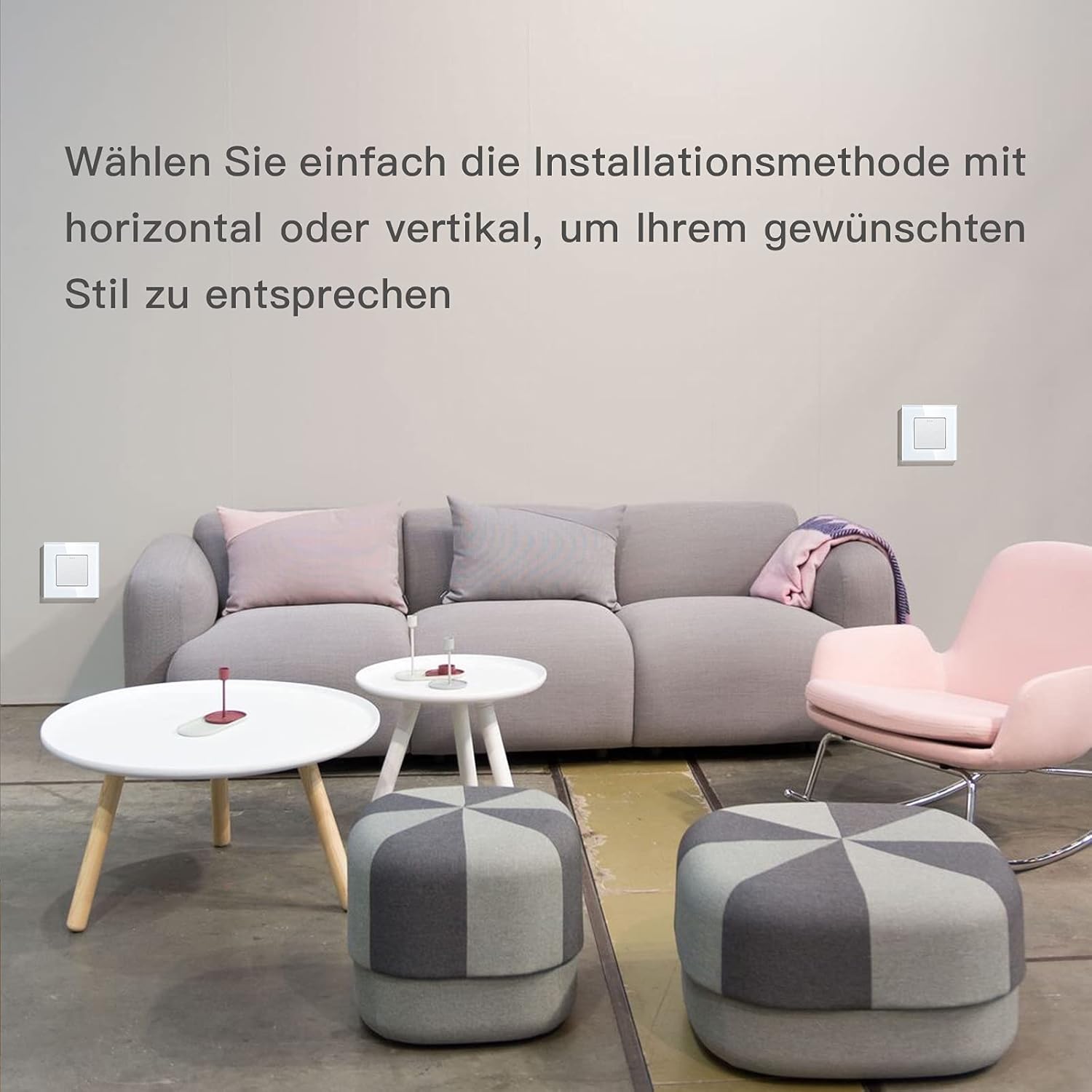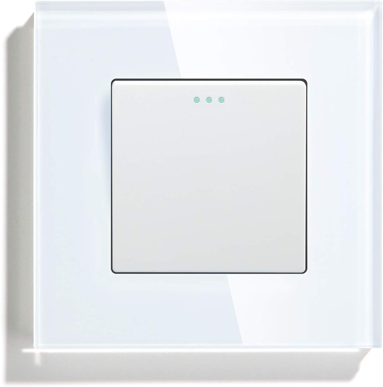 Bseed - Electrical Wall Light Switch with LED Backlight, Glass Faceplate, 10A Toggle