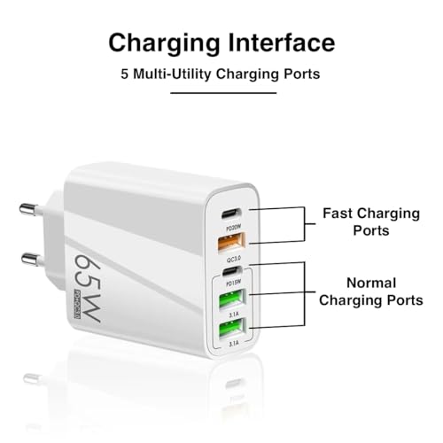 Captese - GaN 65W Fast Charging Adapter with 20W PD USB-C & QC 3.0 Ports