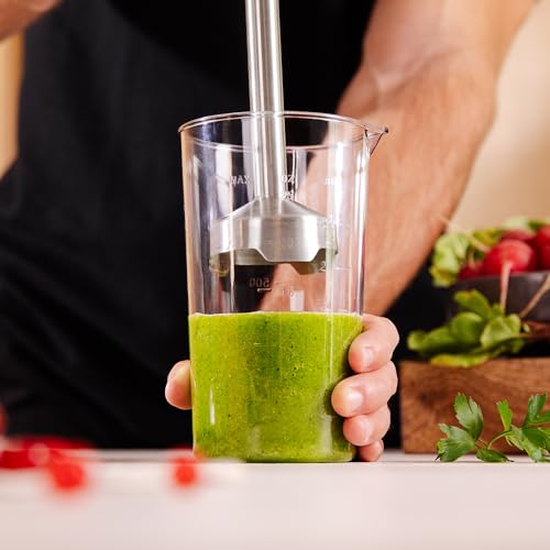 • Includes a large 800ml measuring glass, a chopper, and a whisk for complete meal preparation