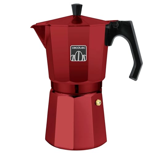 Cecotec - Red Aluminium Coffee Maker for 12 Cups, Ergonomic Handle, Silicone Seal