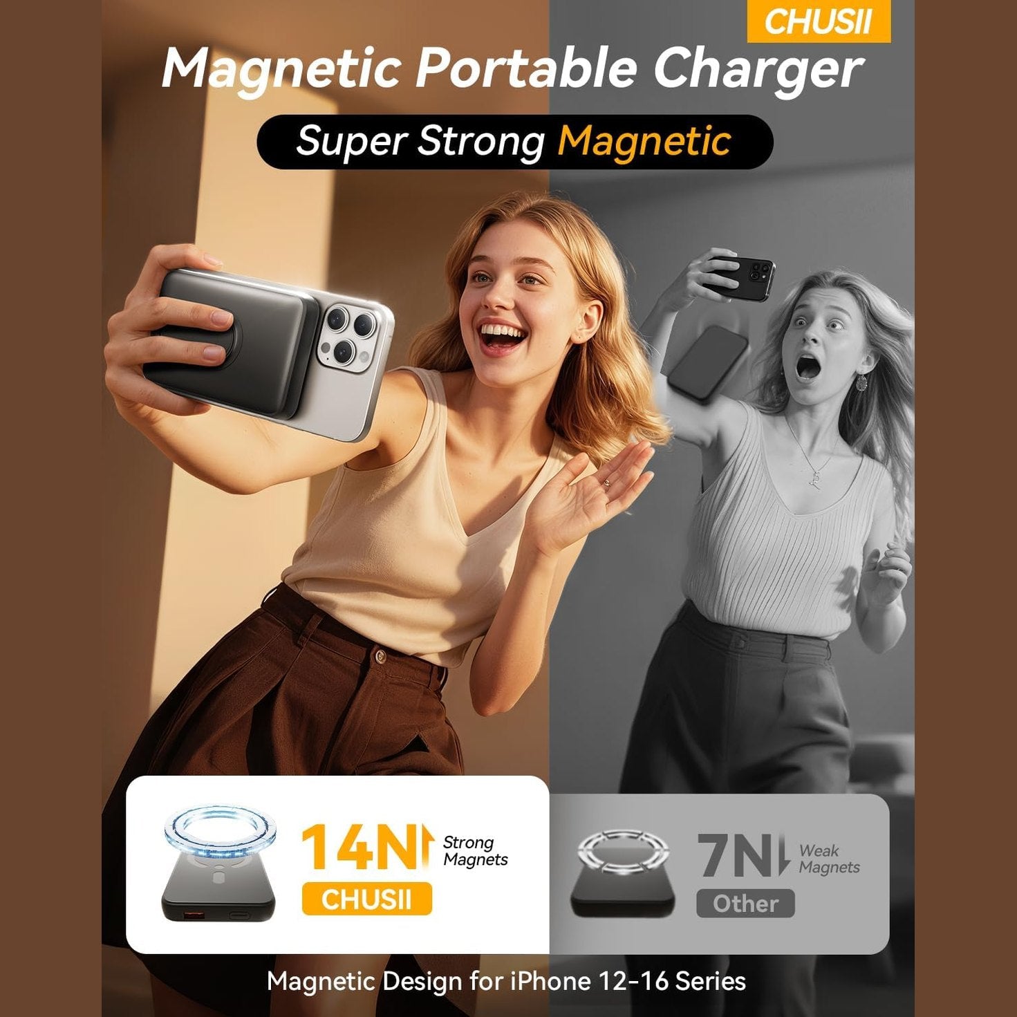 Chusii - 12000mAh MagSafe Portable Charger with PD 20W Fast Charge & Stand