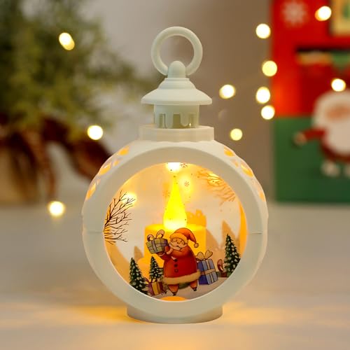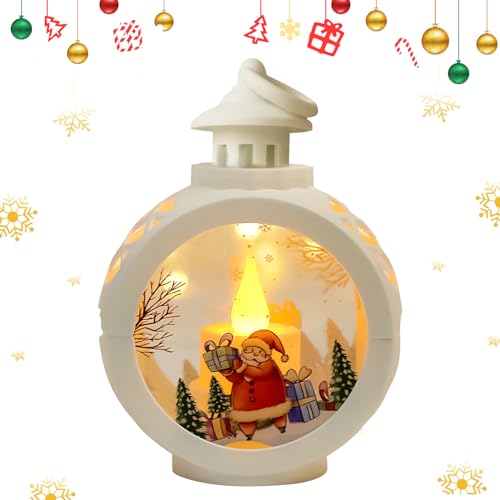 Cradmpat - Vintage LED Christmas Candle Lantern with Santa Claus Design, Fireless Indoor/Outdoor Decor