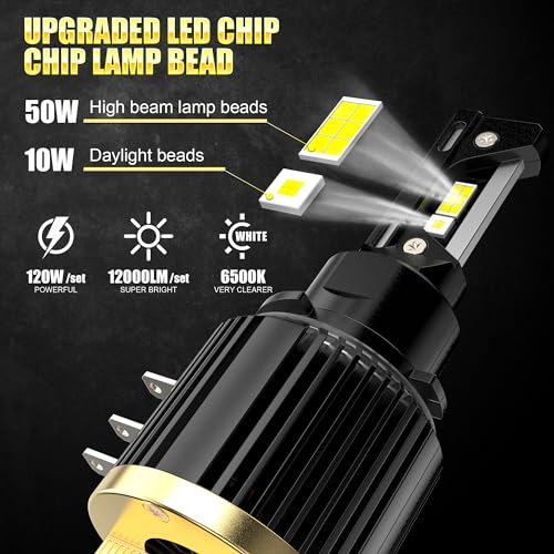 Upgrade to D-Lumina H15 LED Canbus Bulbs for superior brightness. 120W, 12000lm, 6500K, CSP Chip. Perfect halogen replacement for enhanced visibility.