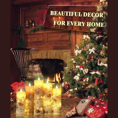 Da By - Hand Painted Birch Bark LED Candle Set with Remote & Dancing Flame