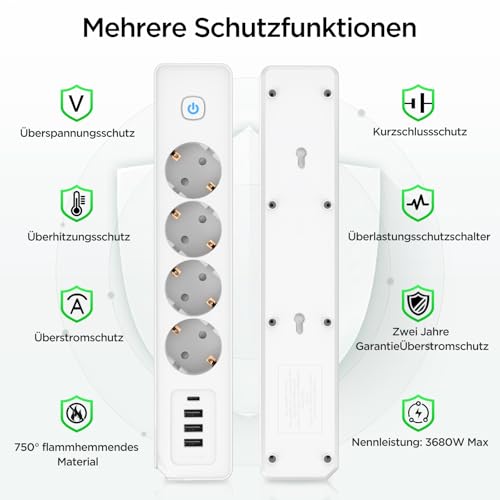 Darbony - 4-Way Power Strip with USB C, Surge Protection, 1.8m Cable