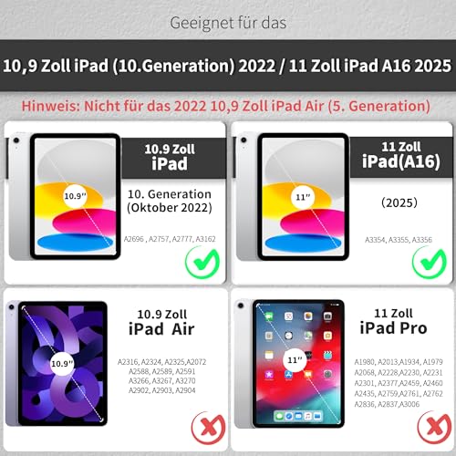 Easyacc - German QWERTZ Keyboard Case for iPad 10.9" 2022, Bluetooth, Protective, Pen Holder