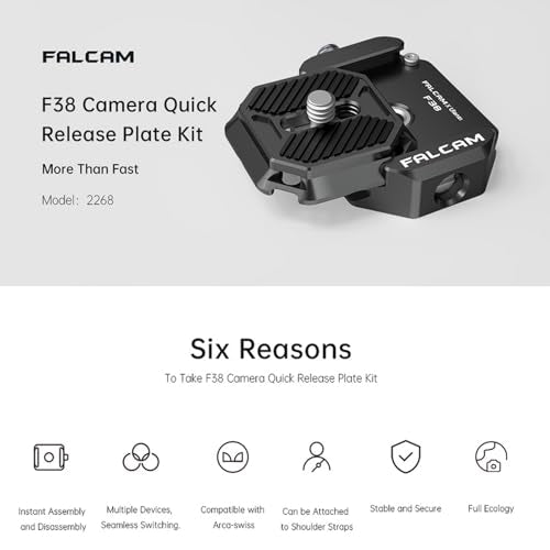 FALCAM - F38 Quick Release Plate Kit with 1/4" to 3/8" Screw, Compatible with 38mm Mounting Adapter for Tripods and Stabilizers