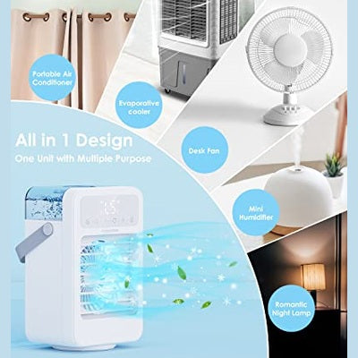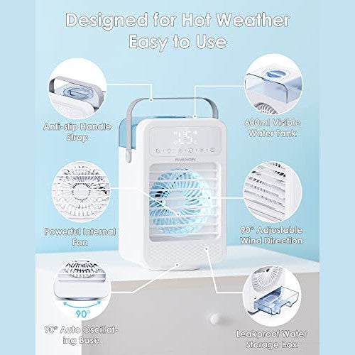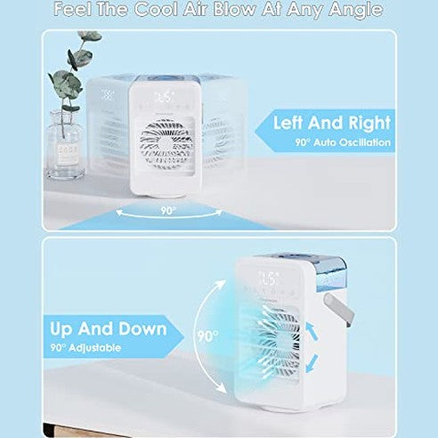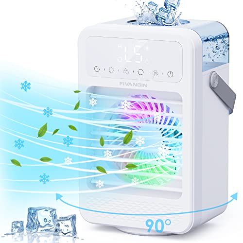 Fivangin - Mini Portable Air Cooler with 5 Wind Speeds, 7 LED Lights, 8H Timer