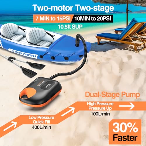 Fowawu - 20 PSI Intelligent Dual Stage SUP Pump with Auto-Off & 12V Car Connector