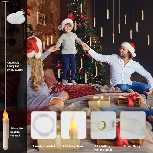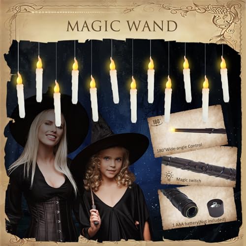 Ftjkgh - Pack of 12 Floating LED Candles with Remote, Battery Operated, Flickering Effect
