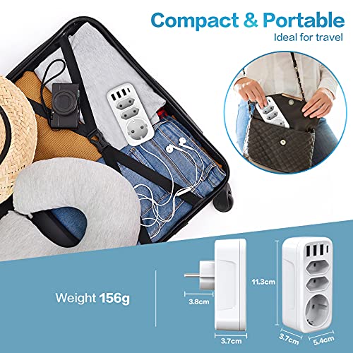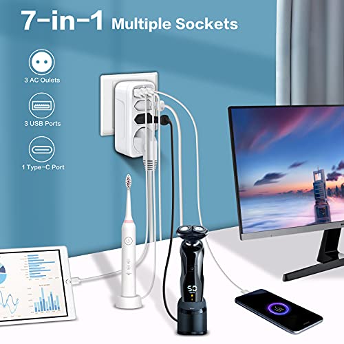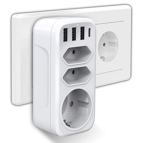 • 7-in-1 design includes 1 Schuko socket, 2 Euro sockets, 3 USB ports, and 1 Type-C port.