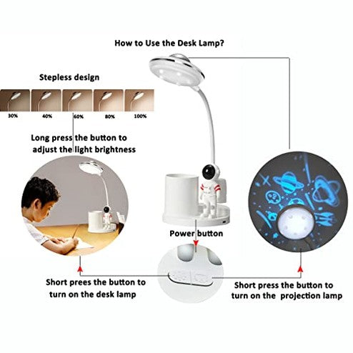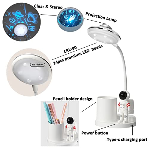 Hallocool - Astronaut Desk Lamp with Projection Light, Pen Holder, Eye-Caring LED