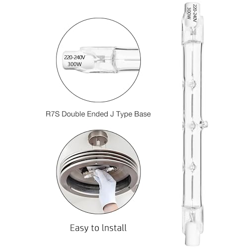 Haraqi - 6 Pack Dimmable R7s Halogen Bulbs, 300W, 2700K Warm White, 4650lm