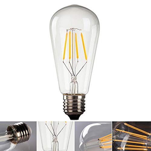 Hntoolight - LED Edison Filament Bulb 4W ST64 Retro Nipple E27, Warm White