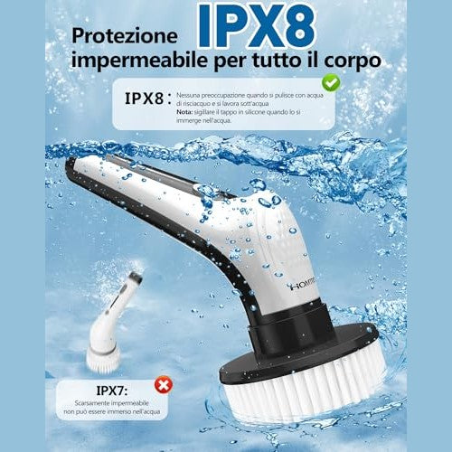 Homtronics - IPX8 Waterproof Rotating Cleaning Brush with 9 Brush Heads