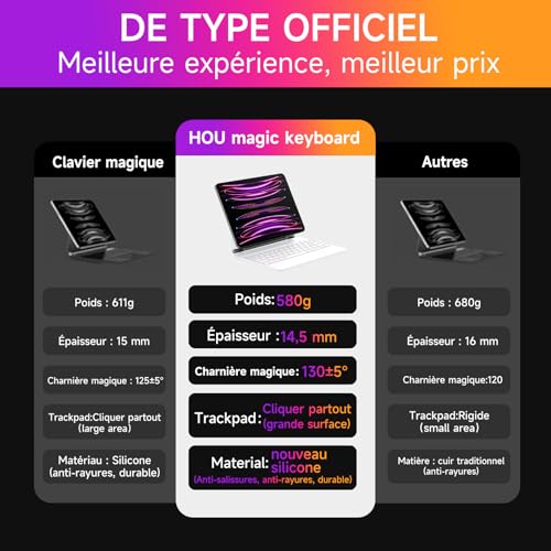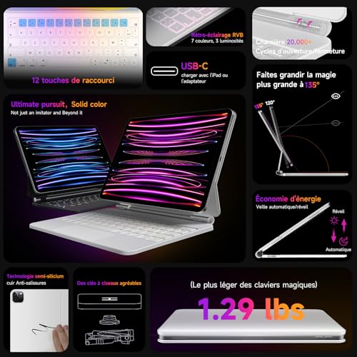 Shop the HOU iPad Air 11" 2024 Keyboard Case with backlight, AZERTY layout, and magic stand. Perfect for iPad Pro 11" and Air 5th/4th Gen. Enhance your typing!