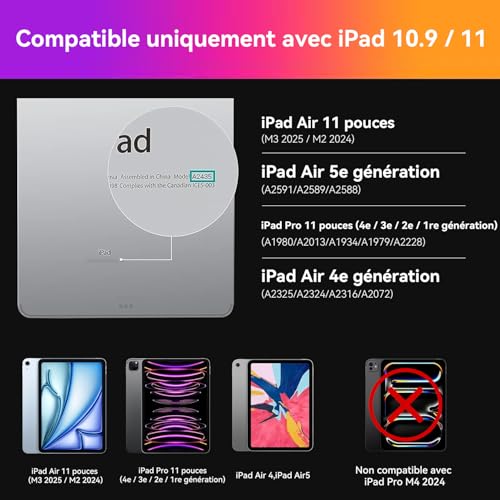 • Designed specifically for the latest iPad models, including iPad Air 11 inch 2024 (M2), 2025 (M3), and iPad Pro 11 inch (1st to 4th Gen).