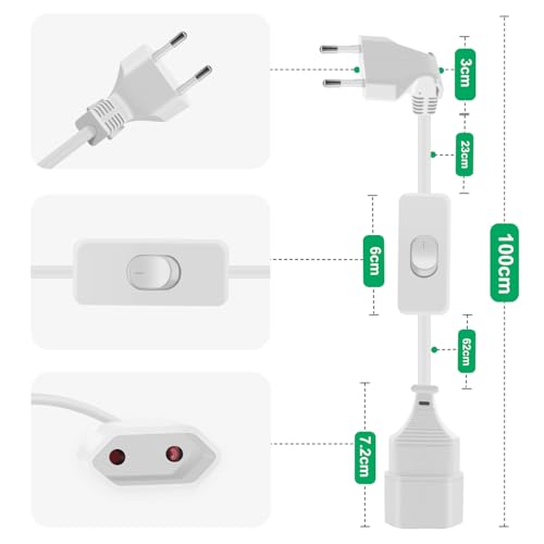 HuaLiSiJi - Euro Extension Cable with Switch, 2.5A, 1m for Household Use