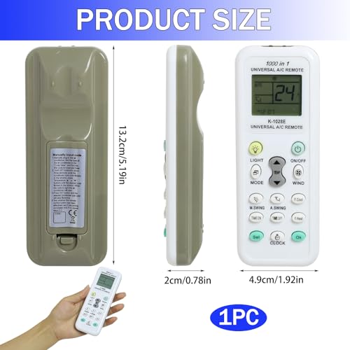 Hugwait - 1000 in 1 Universal LCD Remote for Multiple AC Brands, Easy Setup, Ergonomic Design