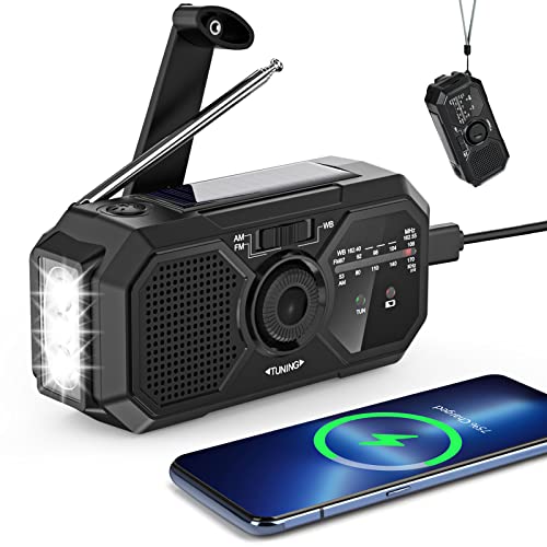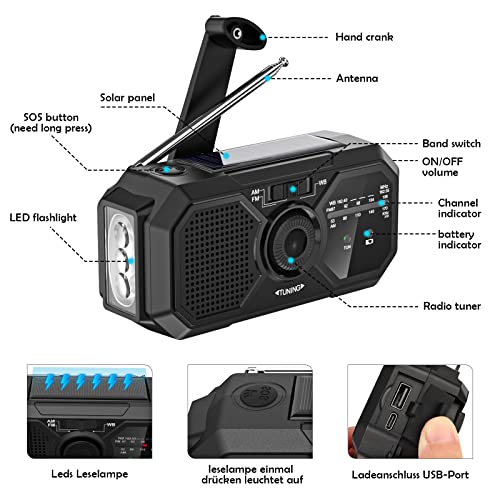 HuiJuKeJi - Crank Solar Radio with LED Torch, USB Rechargeable, Emergency SOS