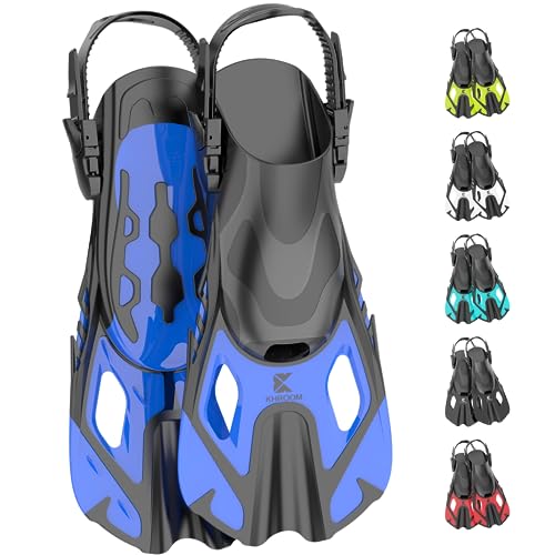 Khroom - Adjustable Snorkel Fins for Adults & Kids, Lightweight, Short Diving Flippers