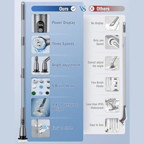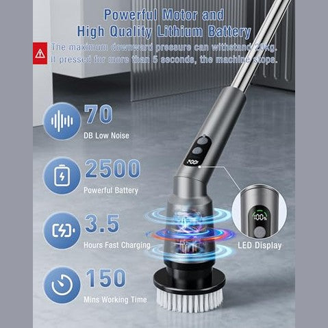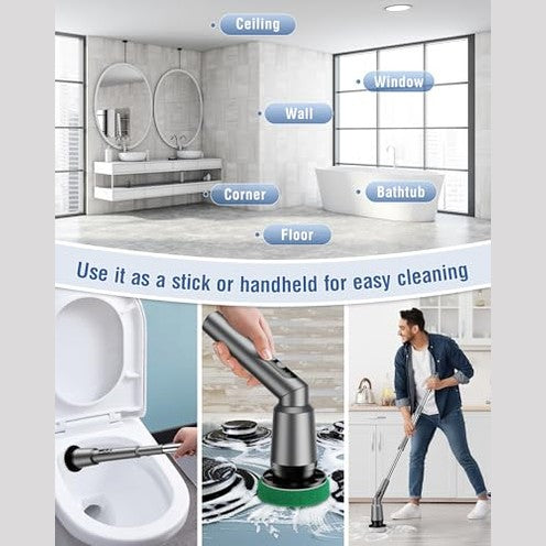 Kimeetol - Upgraded Cordless Electric Spin Scrubber with 8 Brush Heads & Extension Handle