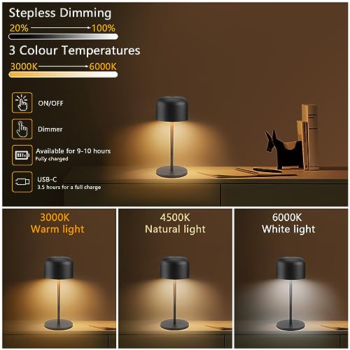 Klighten - 2pcs Dimmable Wireless Table Lamp, USB-C Rechargeable, IP54 Waterproof
