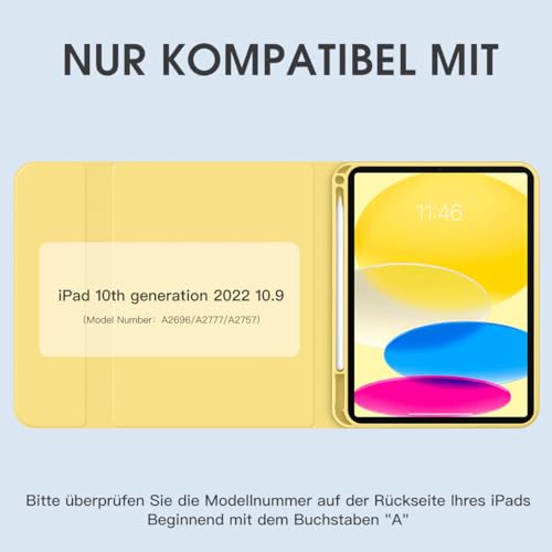 • Keywords: iPad 10 case, magnetic keyboard, auto sleep/wake, German QWERTZ, tablet accessories