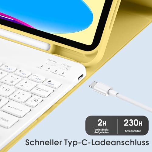 Laetass - iPad 10 Case with Magnetic Keyboard, Auto Sleep/Wake, German QWERTZ