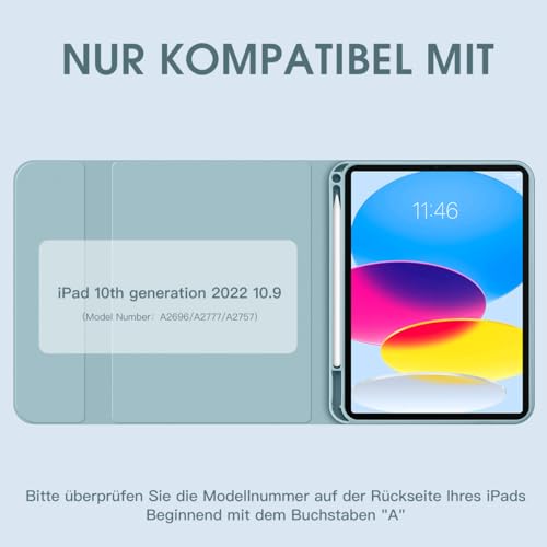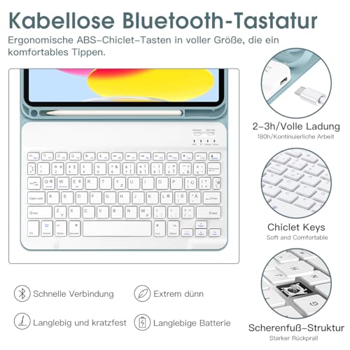 • Keywords: iPad 10 case, magnetic keyboard, auto sleep/wake, QWERTZ keyboard, tablet protection
