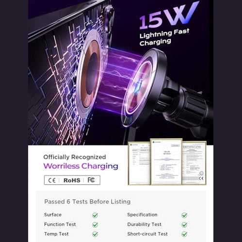 Lisen - 15W MagSafe Wireless Car Charger with Powerful Magnets, Universal Fit