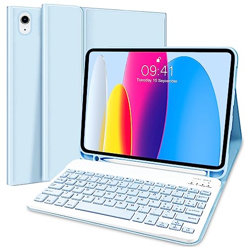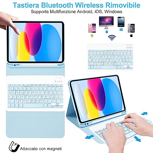 Lupxiu - iPad Keyboard Case for 10th Gen 2022, Italian QWERTY, Removable Wireless, Blue Sky