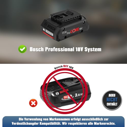 • Perfect compatibility with Bosch 18V batteries such as GBA and GBA ProCORE.
