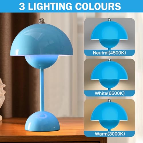 MeYuxg - Wireless Mushroom Lamp, Rechargeable LED Bedside Light, 3 Brightness Modes
