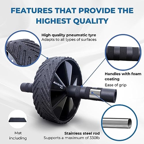 Mobiclinic - Ab Wheel Roller Set with Knee Mat for Core Training, Max 150 kg
