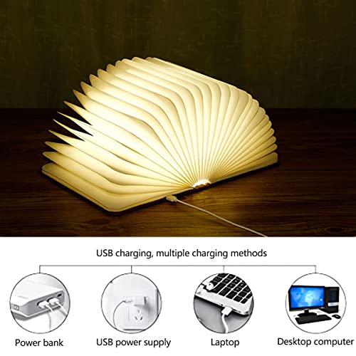 Mobxpar - Wooden Folding Book Lamp, USB Rechargeable, 360° Foldable, LED Mood Lighting