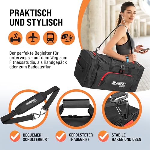 Monzana - Sports Bag & Travel Bag with Shoe Compartment, Waterproof, 90L