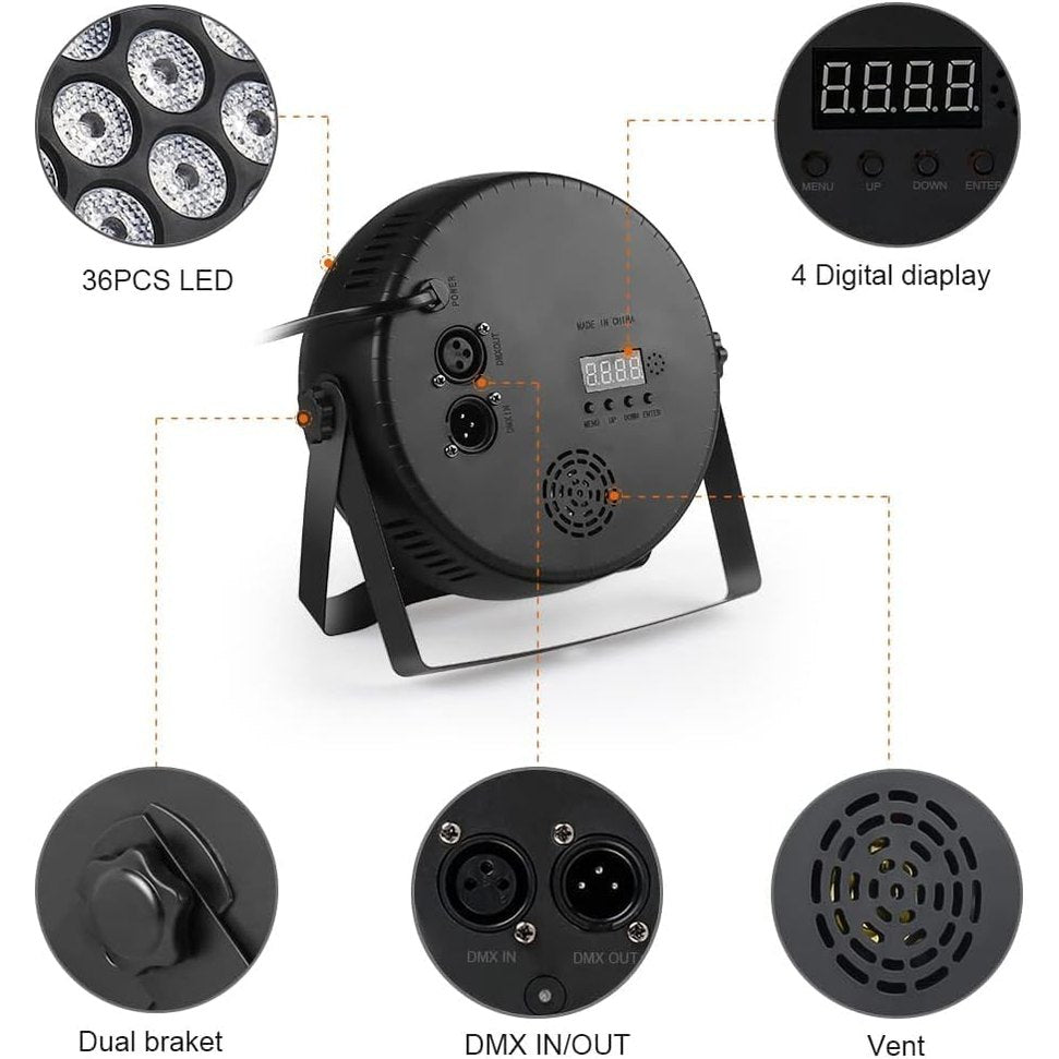 Mosfiata - RGB 36 LED Par Lights, Sound Activated, DMX Control, 7 Modes