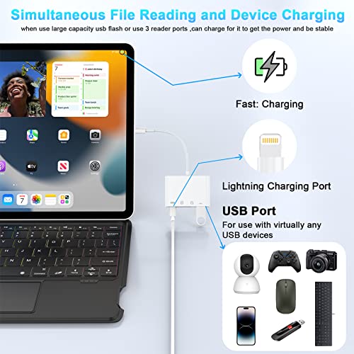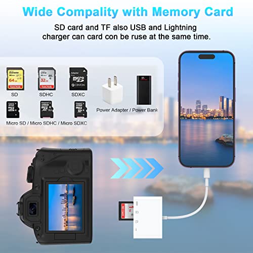 • Multi-functional 4-in-1 design: Includes an SD card slot, a Micro SD (TF) card slot, a USB port, and a Lightning charging port.