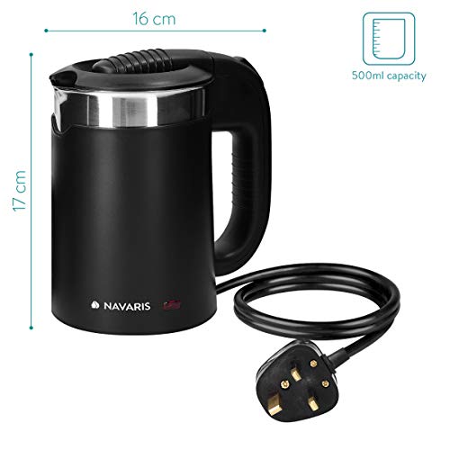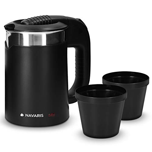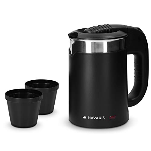Navaris - Electric Travel Kettle 0.5L with Dual Walls, Boil Dry Protection, 1100W