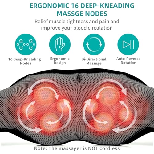Nekteck - Shiatsu Neck and Back Massager with Soothing Heat & Deep Tissue Relief