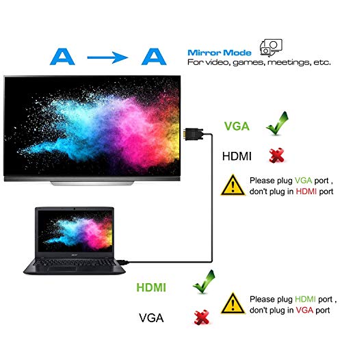 Newbep - HDMI to VGA Adapter Cable, 6ft, Gold-Plated, 1080P, Active Converter